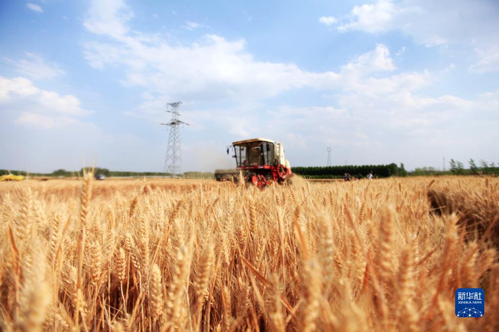 6月7日,在山东省临沂市平邑县地方镇大广良村,农机手驾驶收割机在田间收割小麦。