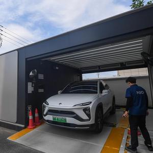 6月7日,工作人员来到浙江长兴县“家之窗电动汽车充电站”,对充电桩进行安全检查,并指导新手车主进行扫码充电。该电动汽车充电站具有直流快充桩15台,可供30辆电动车同时充电。