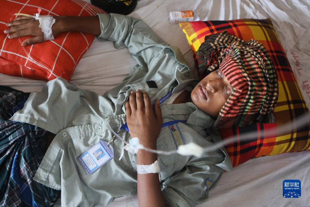 6月7日,在孟加拉国东南部吉大港,一名集装箱堆场火灾受伤人员在医院接受治疗。
