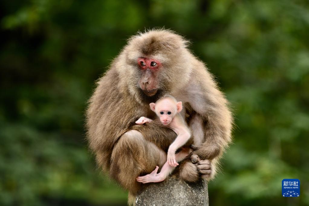 武夷山桐木村桥头的野生藏酋猴(2021年5月16日摄)。