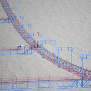 工人在深中通道伶仃洋大桥海上施工猫道上行走(6月7日摄)。