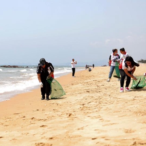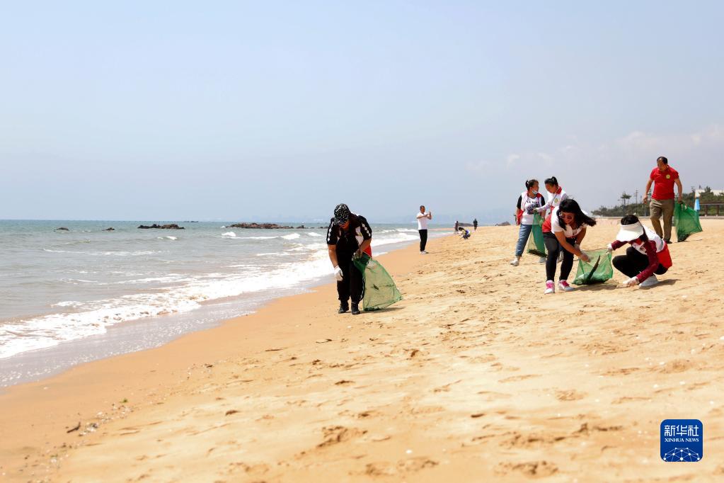 当日是第十四个“世界海洋日”和第十五个“全国海洋宣传日”,志愿者来到海滩上清理垃圾,呼吁人们减少污染,保护海洋环境。