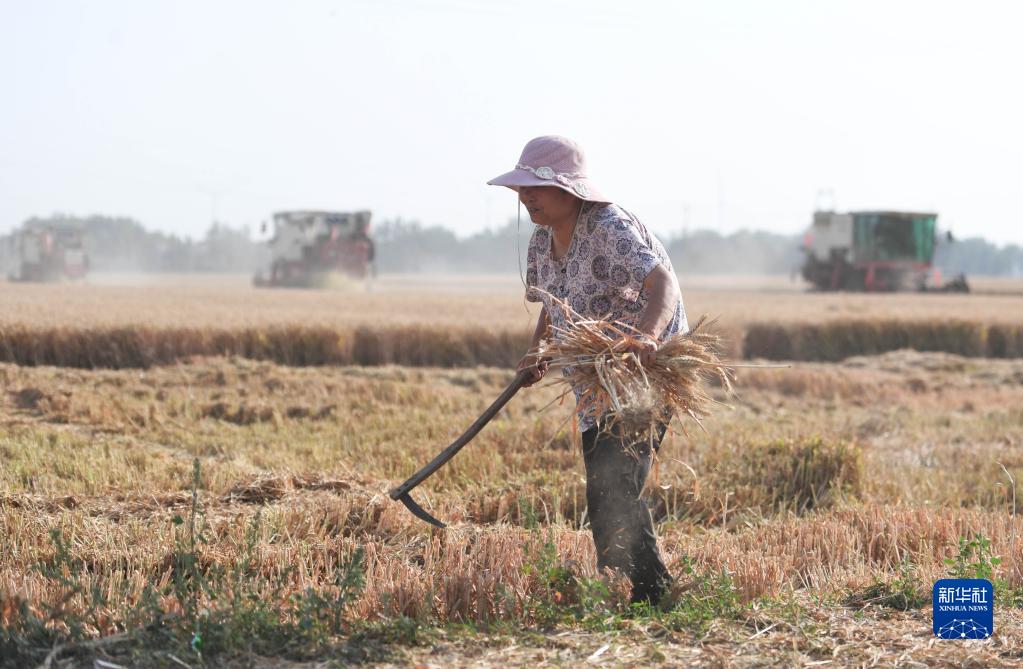 6月8日,在河南省安阳市滑县白马坡高标准农田示范区,白道口镇西小寨村村民在捡拾地头遗落的麦穗。
