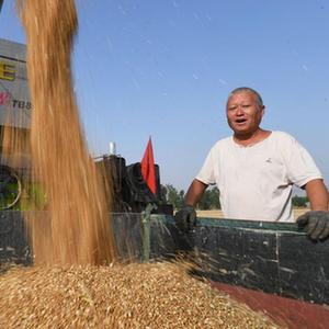 河南省安阳市滑县有“中国小麦第一县”之称。“三夏”时节,当地农民利用晴好天气抢收小麦,确保颗粒归仓。截至6月7日,滑县181.2万亩小麦已收获121.7万亩。