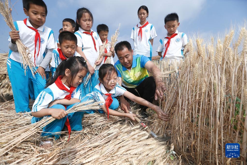 麦收时节,山东省青岛市即墨蓝谷高新区东皋埠小学学生们种植的小麦迎来丰收。孩子们在老师的指导下,收割小麦、捡拾麦穗、脱粒晾晒,在忙碌中感受劳动的艰辛和丰收的快乐。