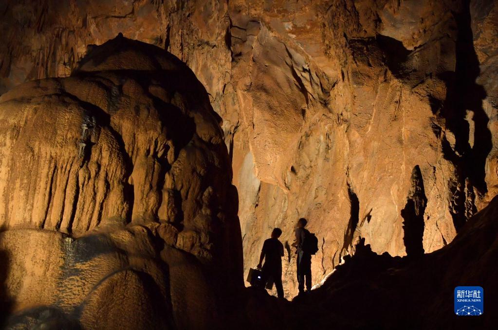 6月8日,游客在湖北省宣恩县锣圈岩的溶洞里游玩。
