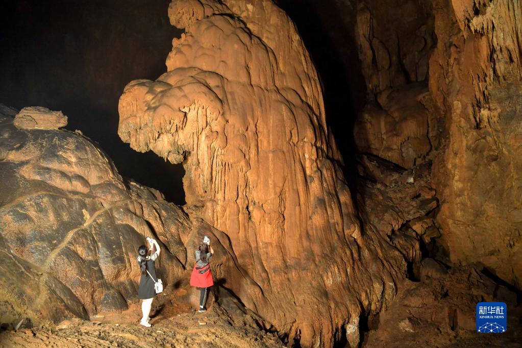 6月8日,游客在湖北省宣恩县锣圈岩的溶洞里游玩。
