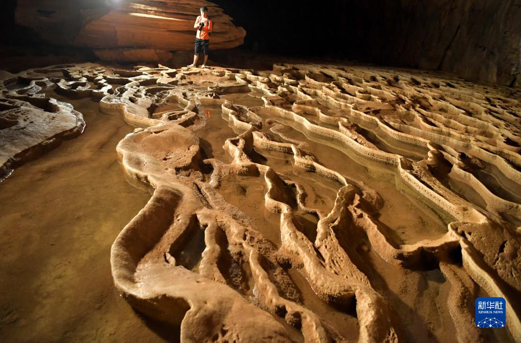 6月8日,游客在湖北省宣恩县锣圈岩的溶洞里游玩。