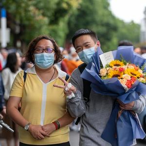 6月8日,在哈尔滨市第三中学考点,考生们走出考场。
