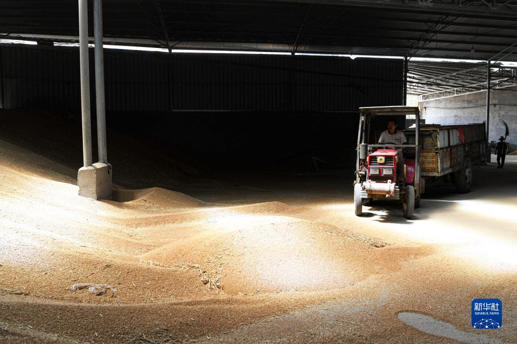 6月7日,刘建儒开着拖拉机在收粮点准备卸下新麦。