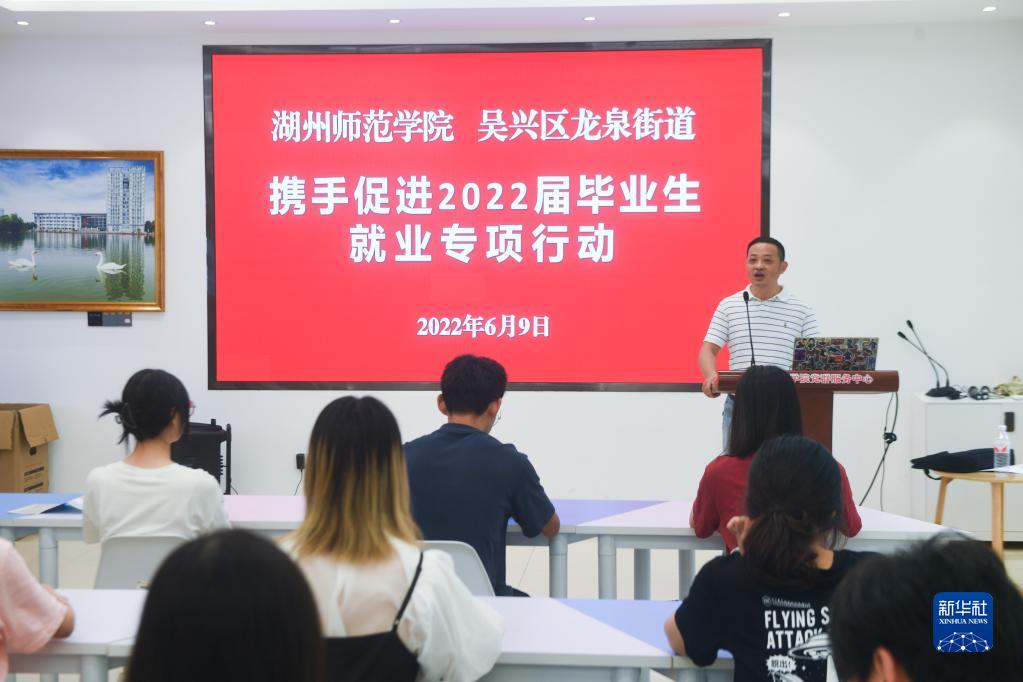 6月9日,湖州市吴兴区龙泉街道工作人员应邀为湖州师范学院2022届毕业生详细介绍就业创业的相关政策,为毕业生答疑解惑。