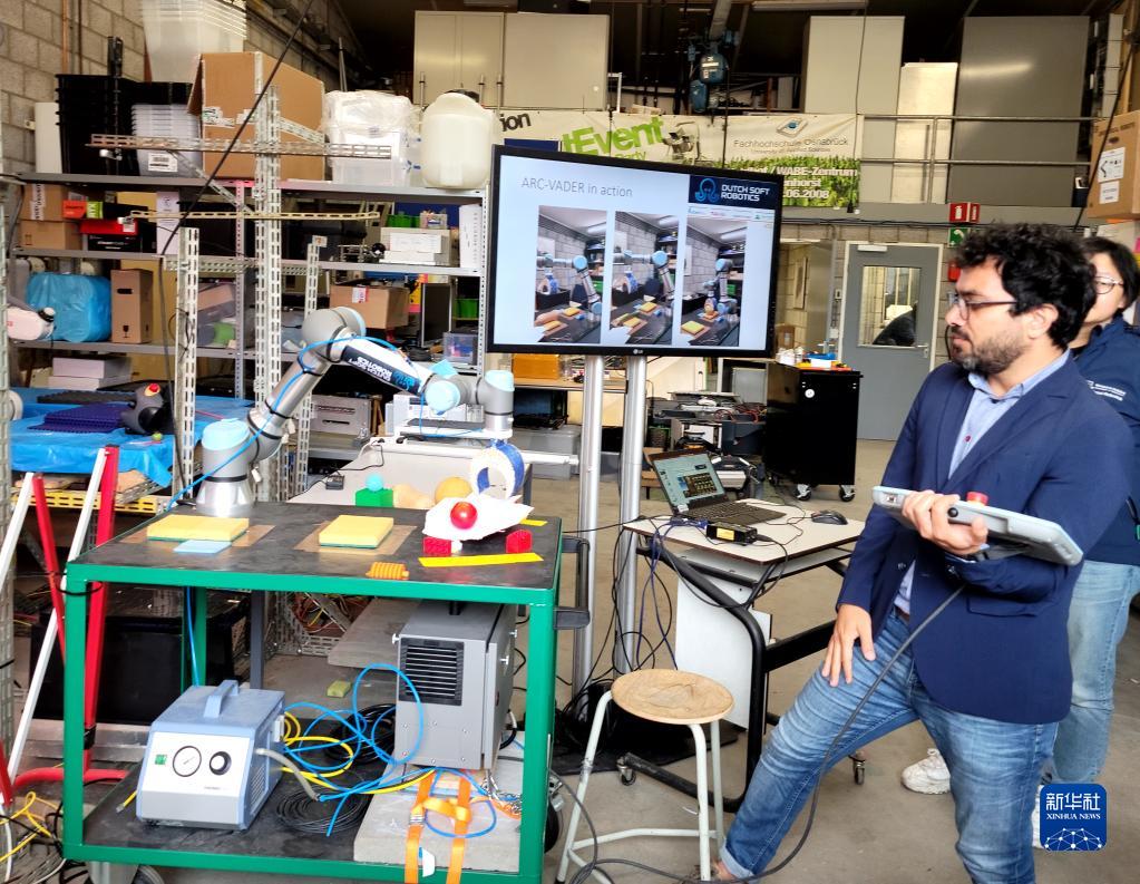 6月7日,荷兰瓦赫宁根大学及研究中心研究人员介绍一台西红柿采摘机器人。