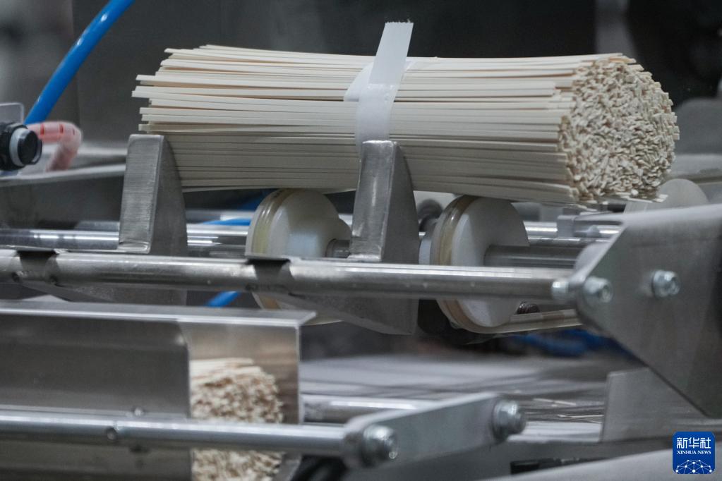 6月7日,在安徽金沙河面业有限责任公司,挂面在生产线上。