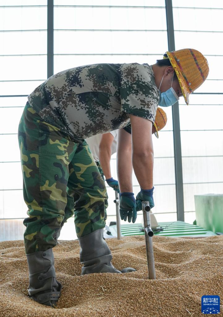 6月7日,在安徽金沙河面业有限责任公司,工作人员对小麦进行质检。
