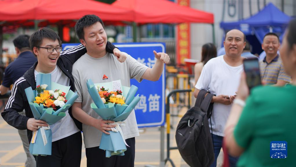6月9日,在长沙市周南中学考点,考生在考试结束后合影。