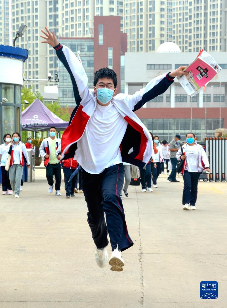 6月9日,一名考生在考试结束后跑出河北省秦皇岛市第一中学考点。