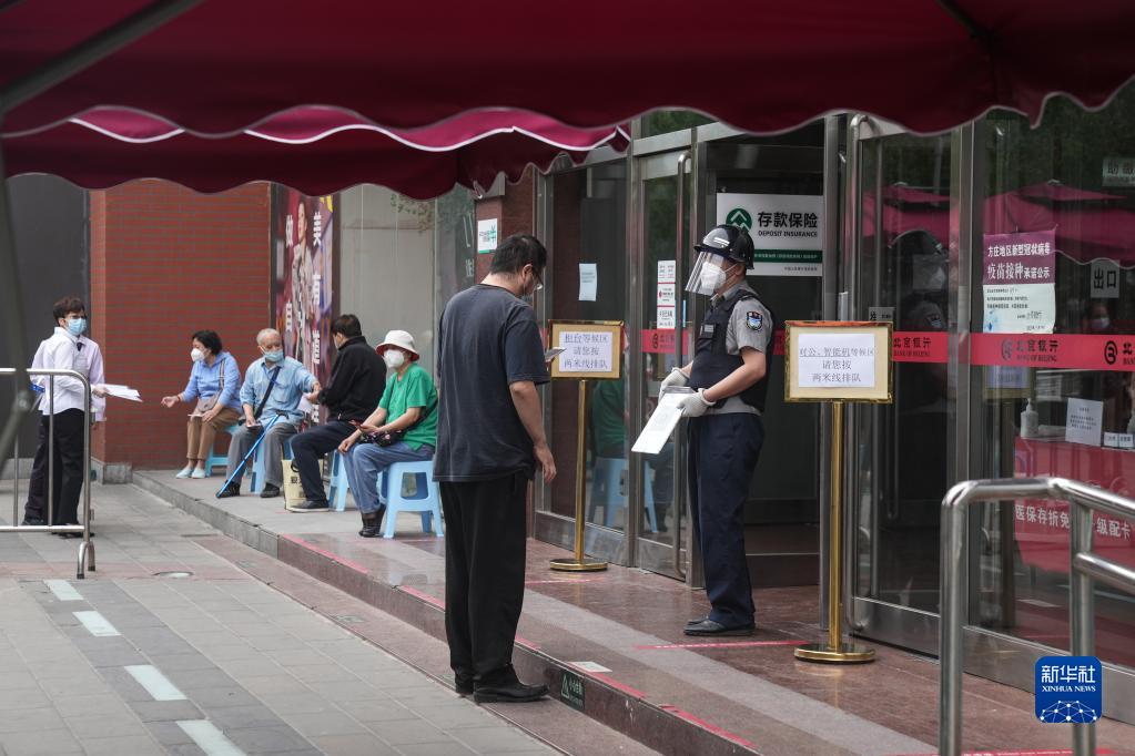 6月9日,丰台区一家银行外,市民在排队等待办理业务。