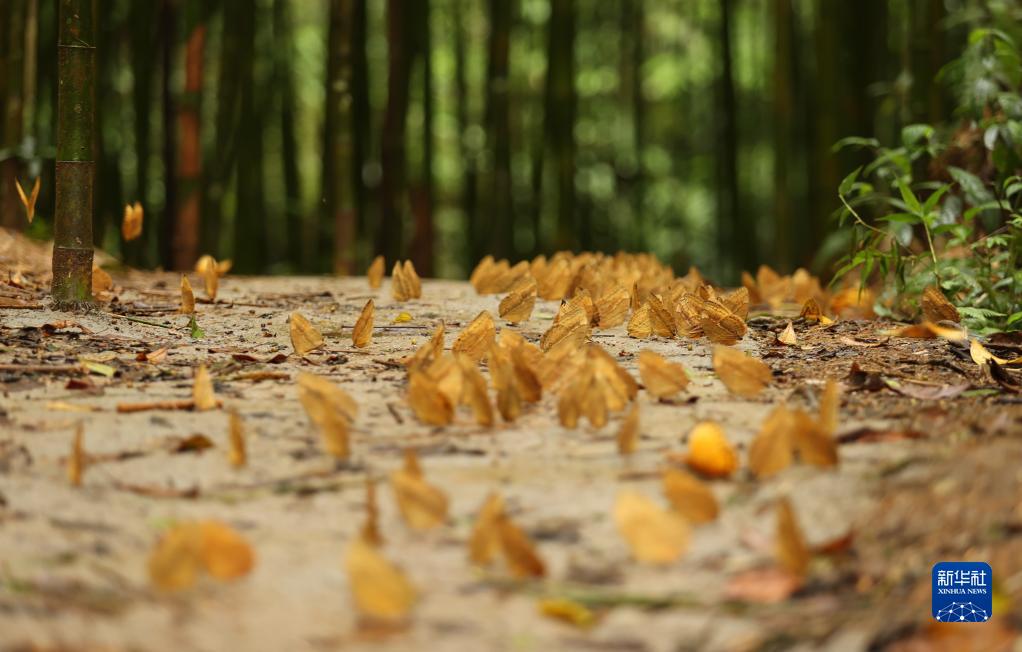 6月8日,蝴蝶在中国·红河蝴蝶谷的小路上停留。