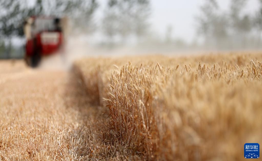6月9日,收割机在山东省临沂市郯城县郯城街道田间收割小麦。