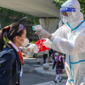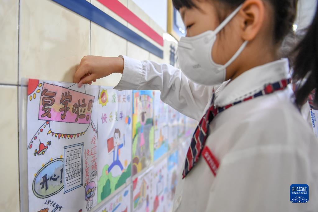 6月10日,在长春市赫行实验学校小学部,学生布置复学主题手抄报。 新华社记者 张楠摄