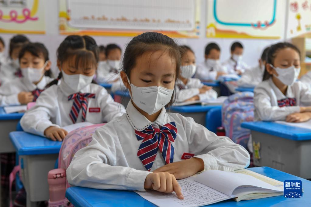 6月10日,在长春市赫行实验学校小学部,学生们进行晨读。 新华社记者 张楠摄