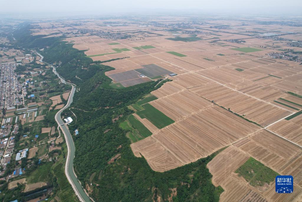 这是宝鸡市陈仓区东关街道大片播种秋粮后的农田(6月9日摄,无人机照片)。