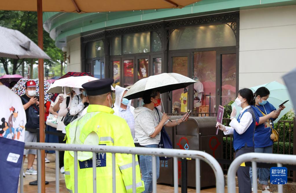 6月10日,游客扫码进入迪士尼世界商店。 新华社记者 方喆 摄