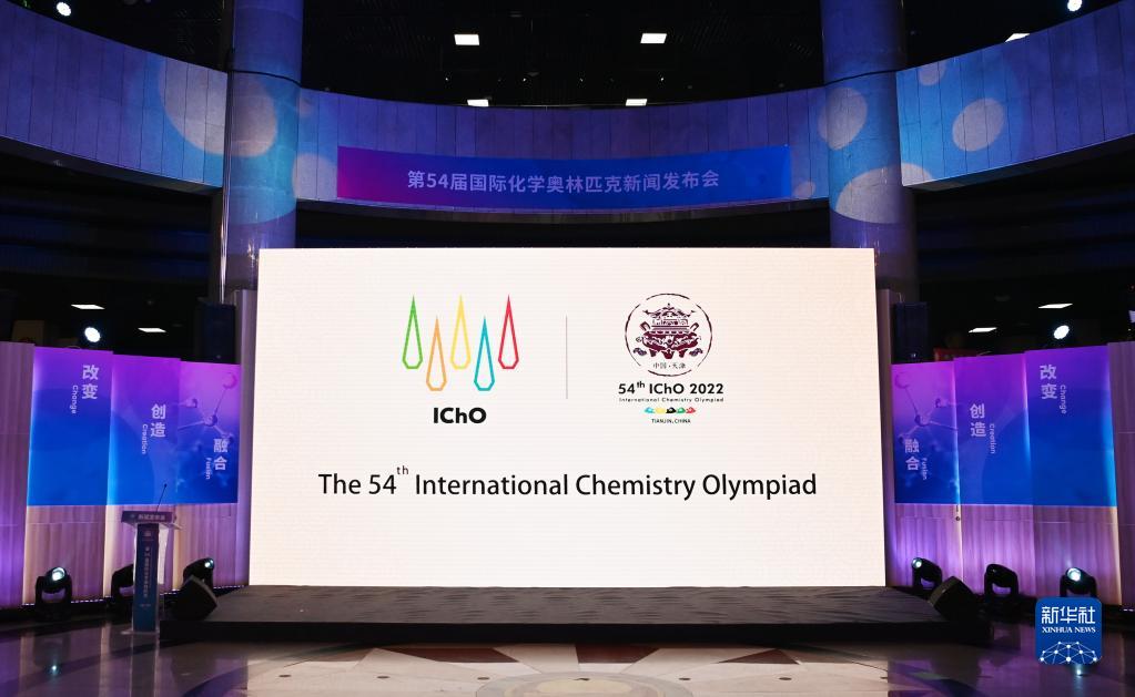 这是6月10日在天津市科技馆拍摄的第54届国际化学奥林匹克新闻发布会现场。