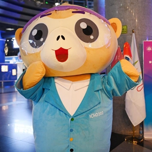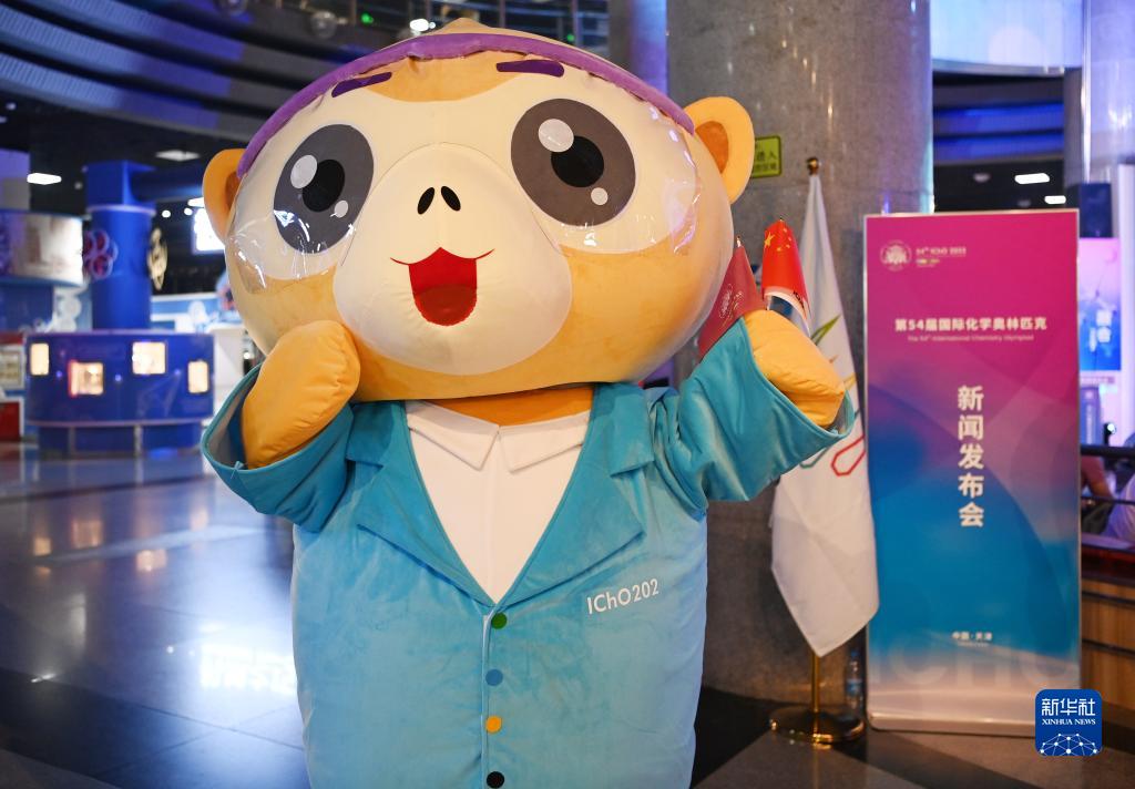 这是6月10日在第54届国际化学奥林匹克新闻发布会现场拍摄的吉祥物形象。