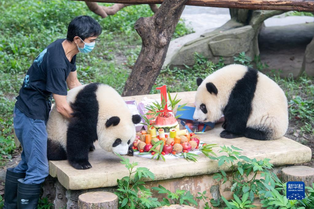 当日,重庆动物园举办“‘星星辰辰’一周岁和‘双重喜庆’三周岁生日庆典”活动,为六只大熊猫集体过生日。