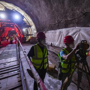 6月10日,在四川省宜宾市屏山县仁沐新高速公路太平隧道内,建设者庆祝隧道顺利贯通。