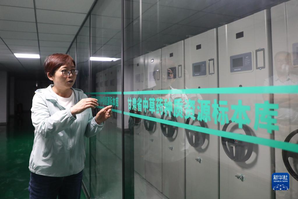 6月10日,陇西药圃园的工作人员在中草药种质资源标本库查看设备运行情况。