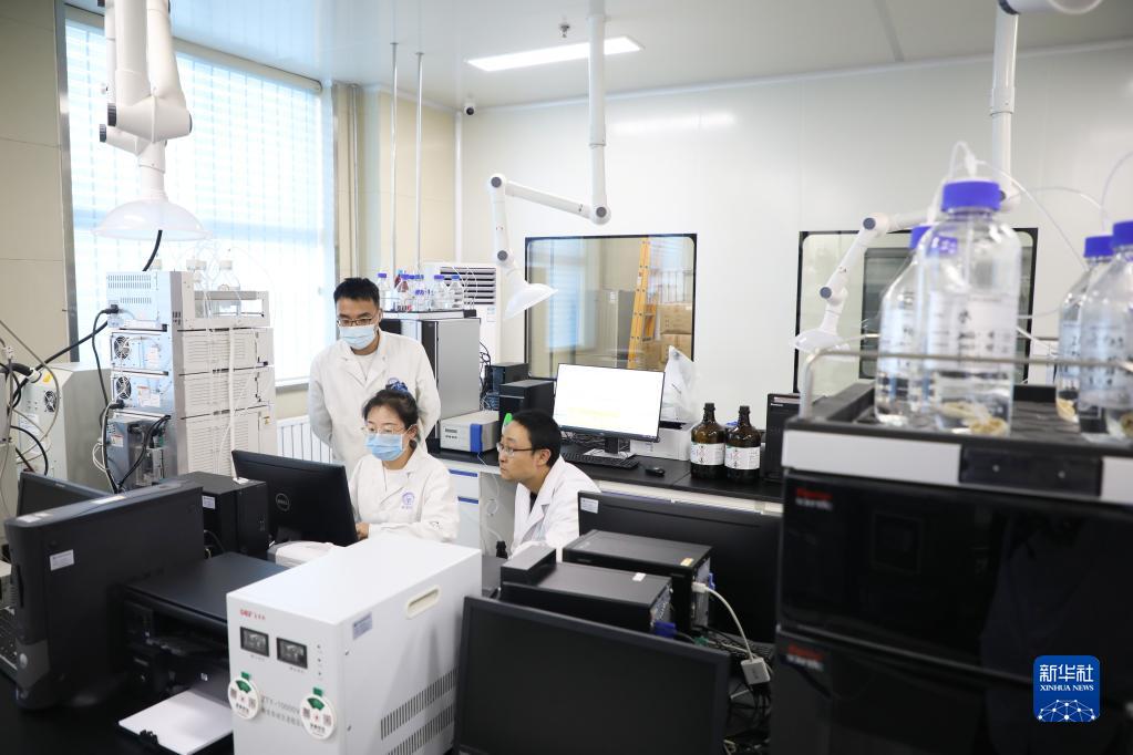 6月10日,在甘肃省药品检验研究院陇西分院仪器室,技术人员处理中药材检验数据。