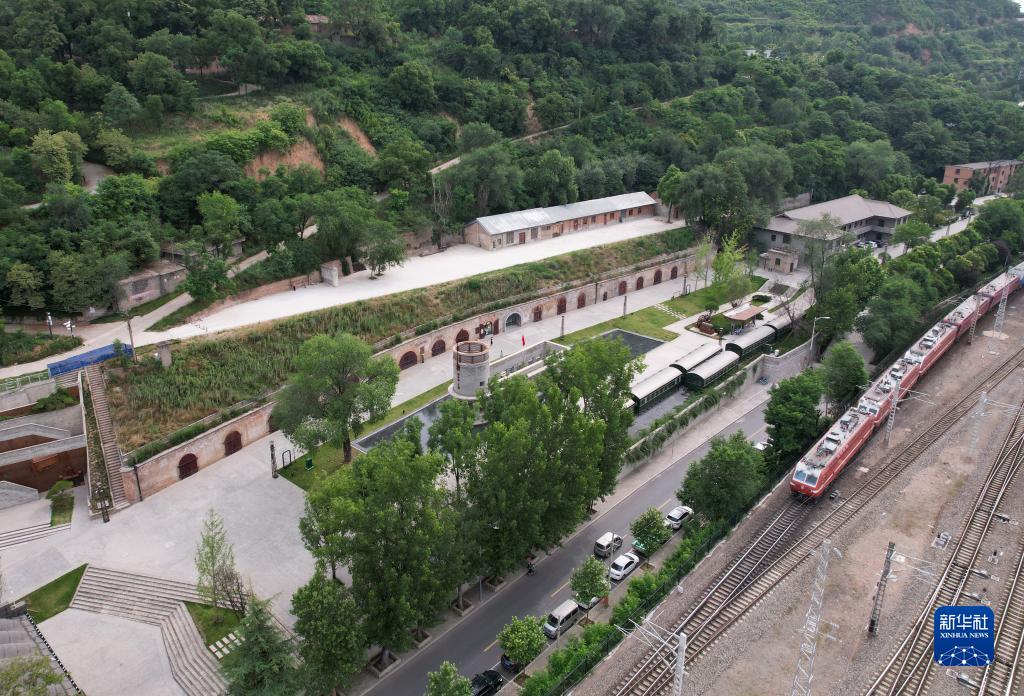 陇海铁路旁的长乐塬抗战工业遗址“窑洞工厂”(6月9日摄,无人机照片)。 新华社记者 邵瑞 摄