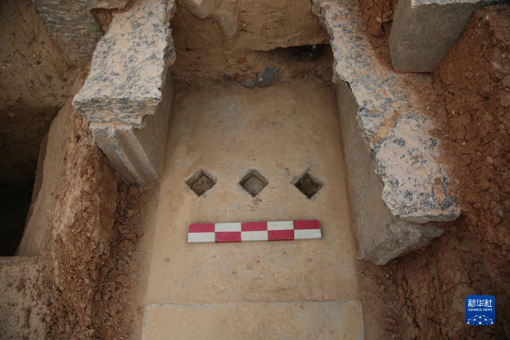 这是汉魏洛阳故城发现的魏晋时期水道的水门凿孔(资料照片)。新华社发(中国社会科学院考古研究所洛阳汉魏城队供图)