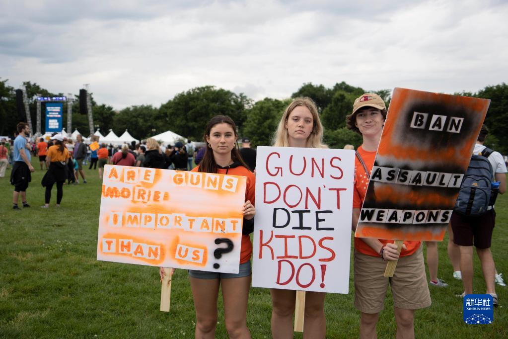 6月11日,人们在美国首都华盛顿举行集会示威活动,要求政府和政客应对枪支暴力问题,加强保护儿童生命安全。
