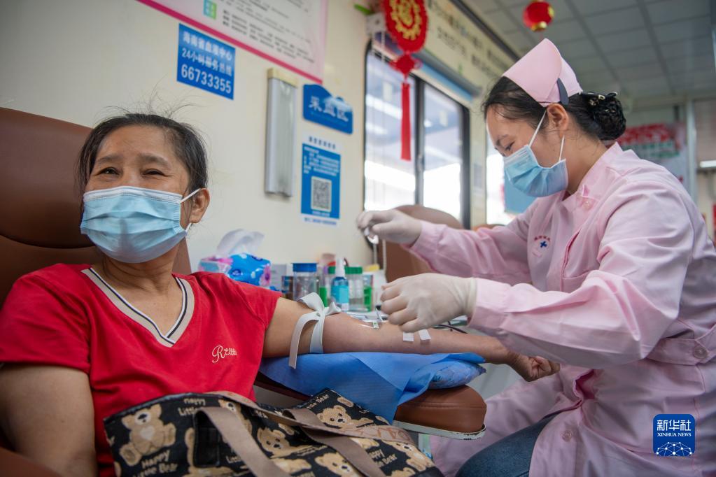 6月13日,海南省琼海市民在献血点献血。