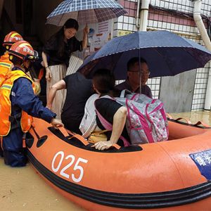 新华社照片,福州,2022年6月13日 南方强降雨致超警洪水 多地提升应急响应 6月13日,福建南平市光泽县李坊乡上观村组织人员清理道路溜方(手机照片)。 新华社发