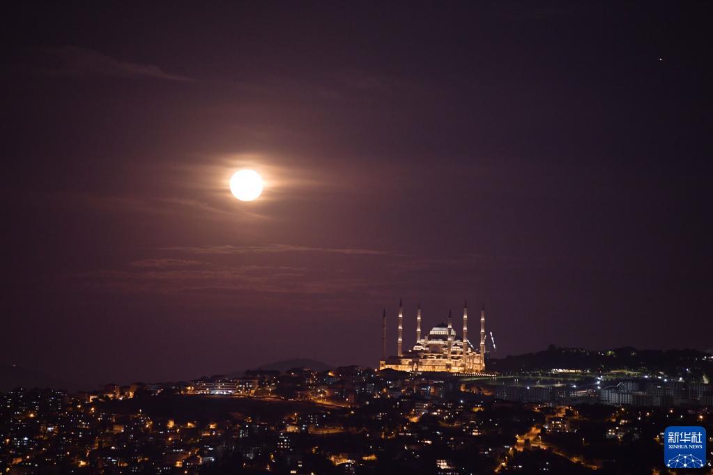 这是6月14日在土耳其伊斯坦布尔拍摄的“超级月亮”。