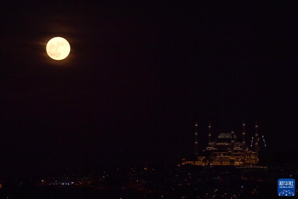这是6月14日在土耳其伊斯坦布尔拍摄的“超级月亮”。