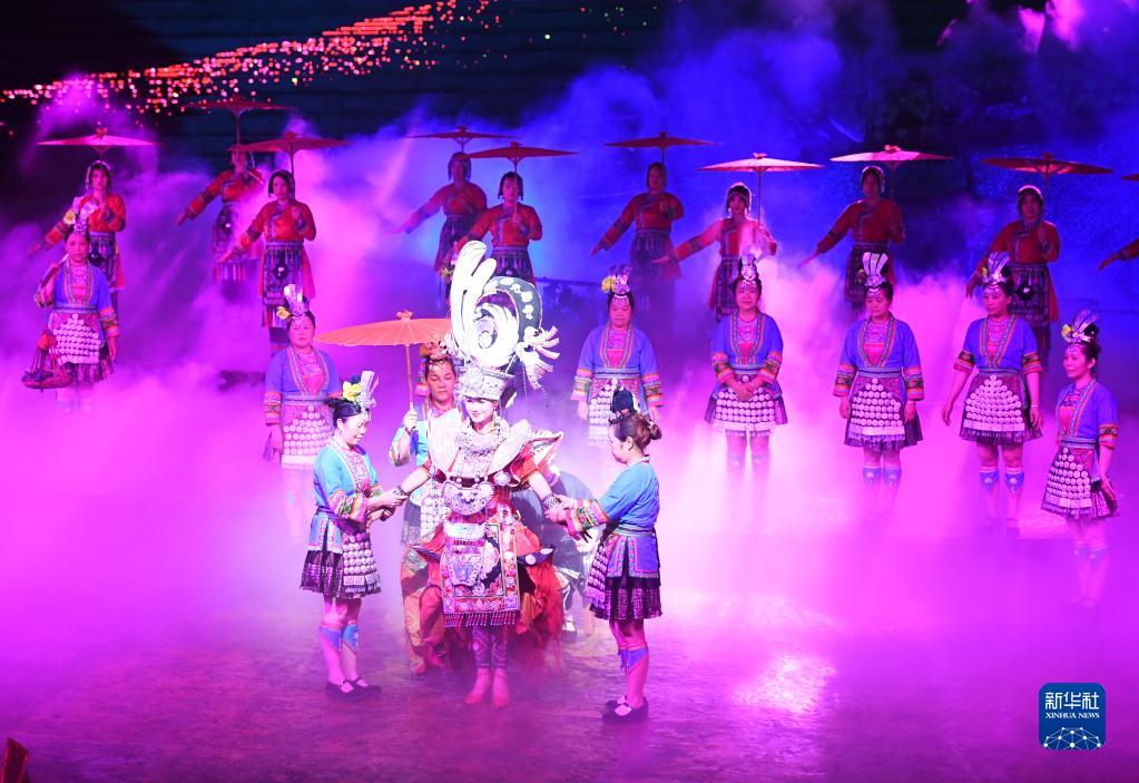 近日,广西三江侗族自治县独具侗族风情的大型实景演出《坐妹》随着旅游市场逐渐恢复开演迎客。《坐妹》融合侗族地区丰富多彩的侗族歌舞、侗族服饰等文化元素,再现侗族传统婚恋、农耕习俗等场景,演出多年深受游客欢迎。