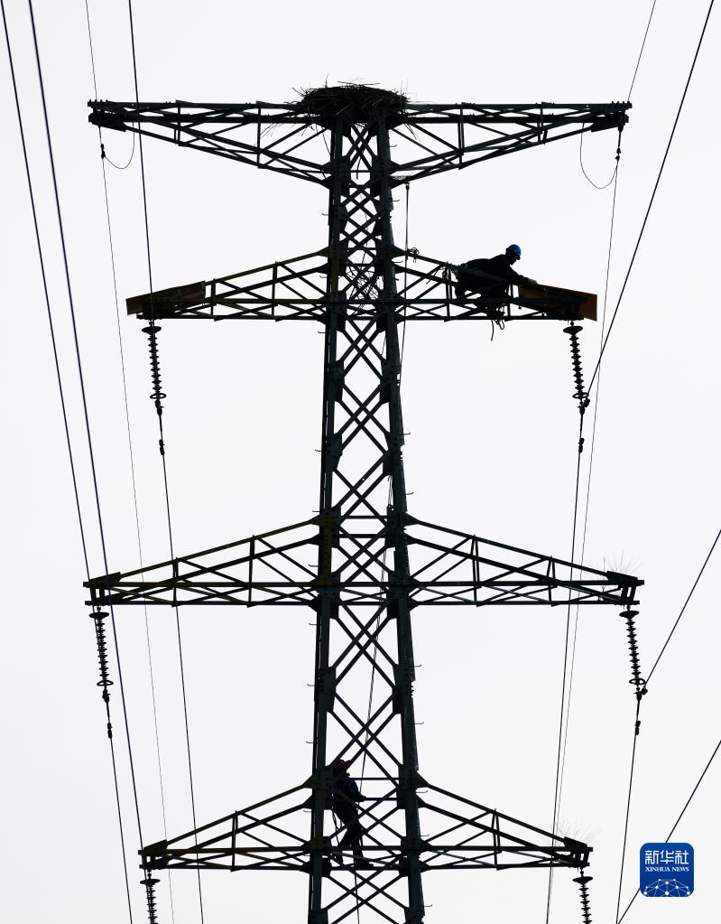 拥有扎龙湿地的黑龙江省齐齐哈尔市不仅是丹顶鹤的故乡,也是有着“鸟界国宝”之称的国家一级保护鸟类——东方白鹳的栖息地。目前正值候鸟繁育季,东方白鹳对于在高大的输电铁塔上“筑巢育子”有着偏爱。据统计,齐齐哈尔市有东方白鹳鸟巢落户线路杆塔100余处。为保障电网输电线路稳定运行和东方白鹳家园安全,国网齐齐哈尔供电公司工作人员通过在现有鸟巢上安装护鸟板、搭建人工鸟巢、开展“爱鸟特巡”等一系列爱鸟护线措施,对输电线路和鸟类进行双重守护,尽可能促进鸟类与供电设备和谐共存。