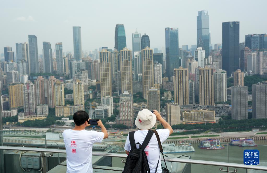 6月18日,参加活动的摄影爱好者在重庆市南岸区的一栋高楼顶上拍摄重庆城市风光。