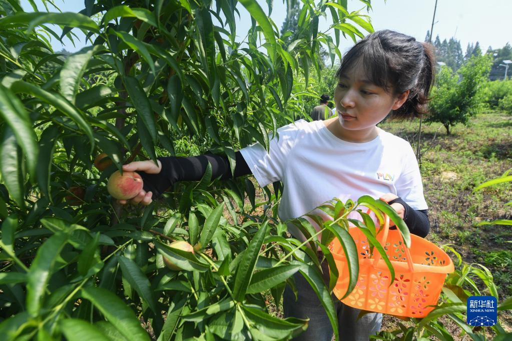 6月18日,游客在道场乡道场浜村的桃园里采摘庚村阳桃。