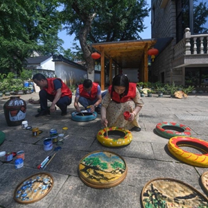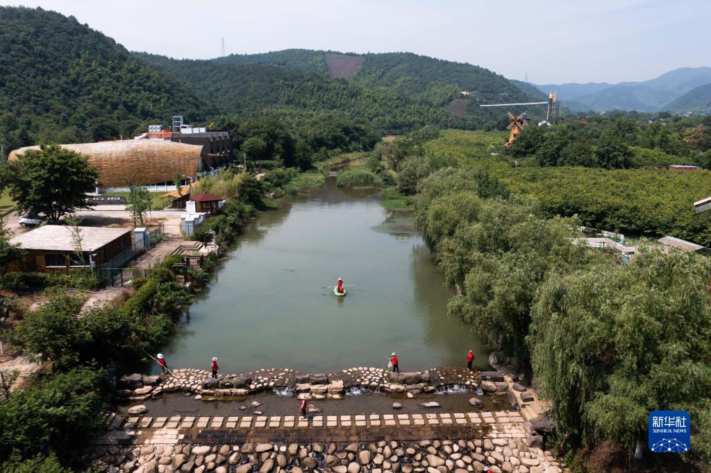 6月18日,小浦镇的“杏福”义工在开展河道清理专项治理行动(无人机照片)。