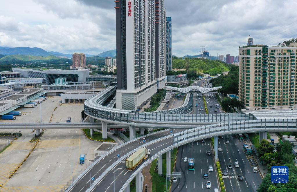一辆从莲塘口岸入境的跨境货车行驶在深圳东部过境高速公路上(6月17日摄,无人机照片)。