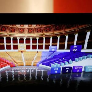 6月20日凌晨在法国巴黎拍摄的视频画面显示,法国国民议会选举第二轮投票的初步统计结果。