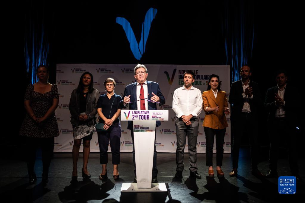6月19日,法国极左翼政党“不屈法国”领导人梅朗雄在巴黎举行的选后集会上讲话。