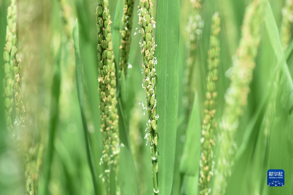 这是6月14日在湖南省常德市澧县涔南镇鸡叫城村拍摄的吐穗扬花的早稻。