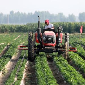 6月21日,在石家庄市行唐县南桥镇东安太庄村花生种植基地,农民驾驶农机在田间劳作。